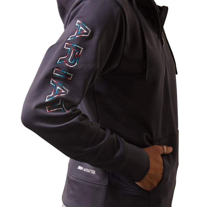 The Ariat Tek fabric of this hoodie looks and wears well when feeding chores are in your future. Hay, sawdust and dirt brush right off so you aren’t dragging it into your house or vehicle.