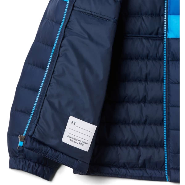 This cozy jacket is built with water-resistant fabric and 450-fill down insulation. Snug binding at the hood and an extended chin guard keeps them warm and protected. Functional hand pockets in the front keep their hands warm and carry their essentials.