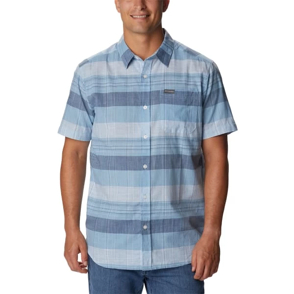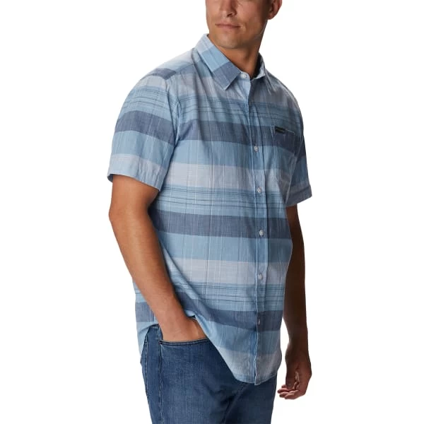 This lightweight button-down shirt features a chest pocket and is crafted with sweat-wicking, adventure-ready fabric.