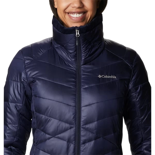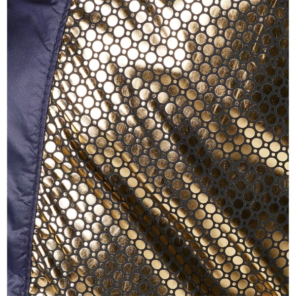 A collar lined with plush fleece and a statement-making thermal-reflective gold lining throughout keep you stylishly cozy. Down-like synthetic insulation adds warmth without weight and stays toasty even when wet. The water-resistant fabric has a subtle sheen for a luxe look.